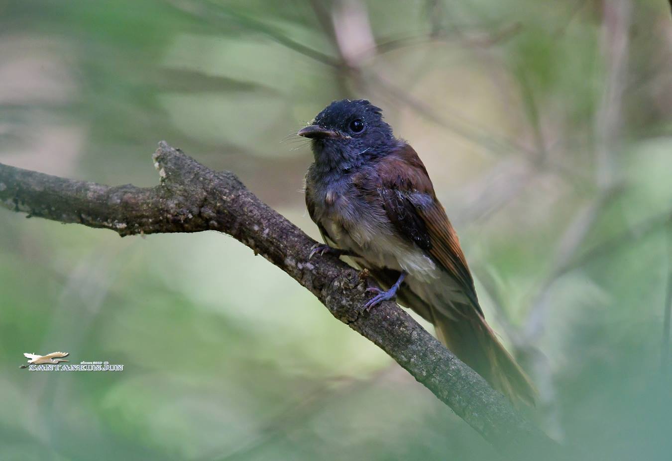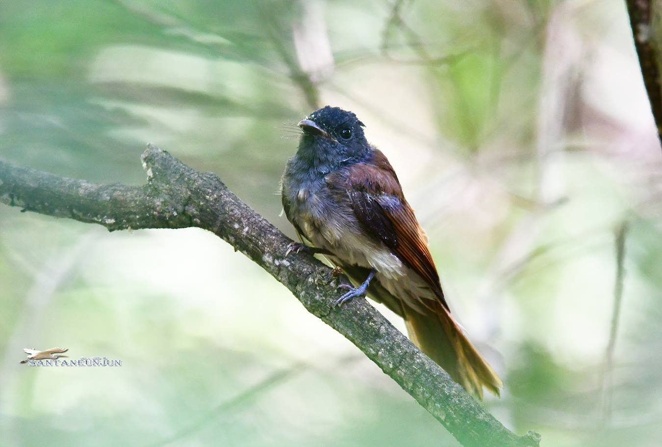 삼광조*Terpsiphone*atrocaudata*Black*Paradise*Flycatcher