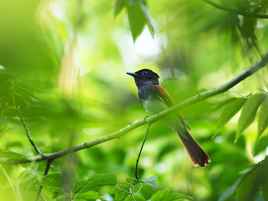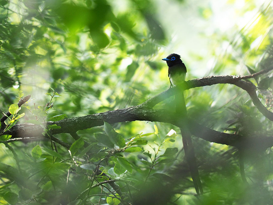 삼광조*Terpsiphone*atrocaudata*Black*Paradise*Flycatcher