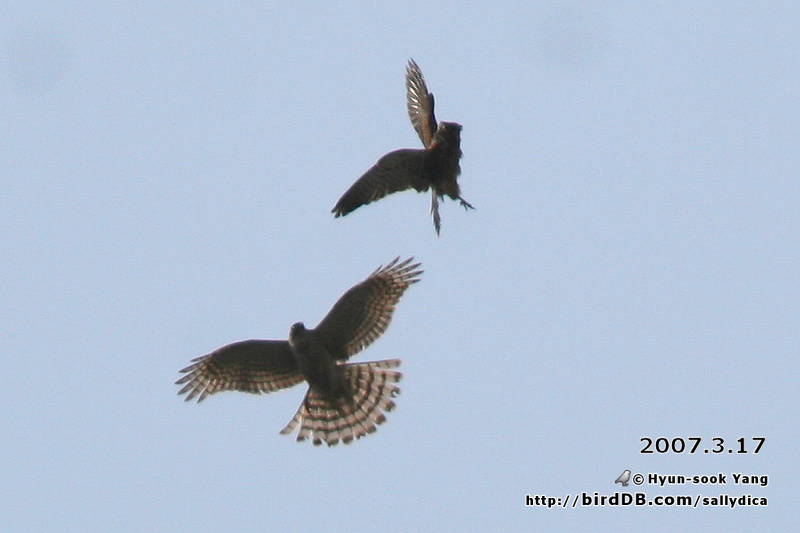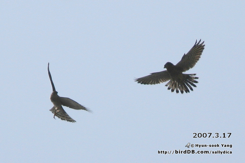 새매와 황조롱이가 이단옆차기를 하며.. 공중전을 벌이고 있었습니다.