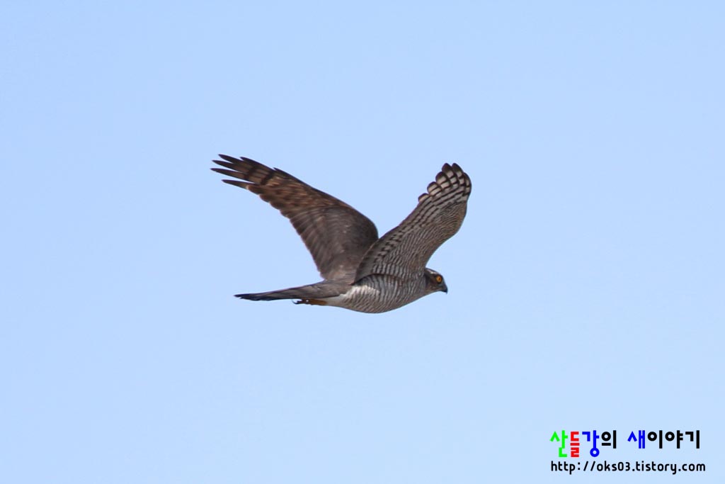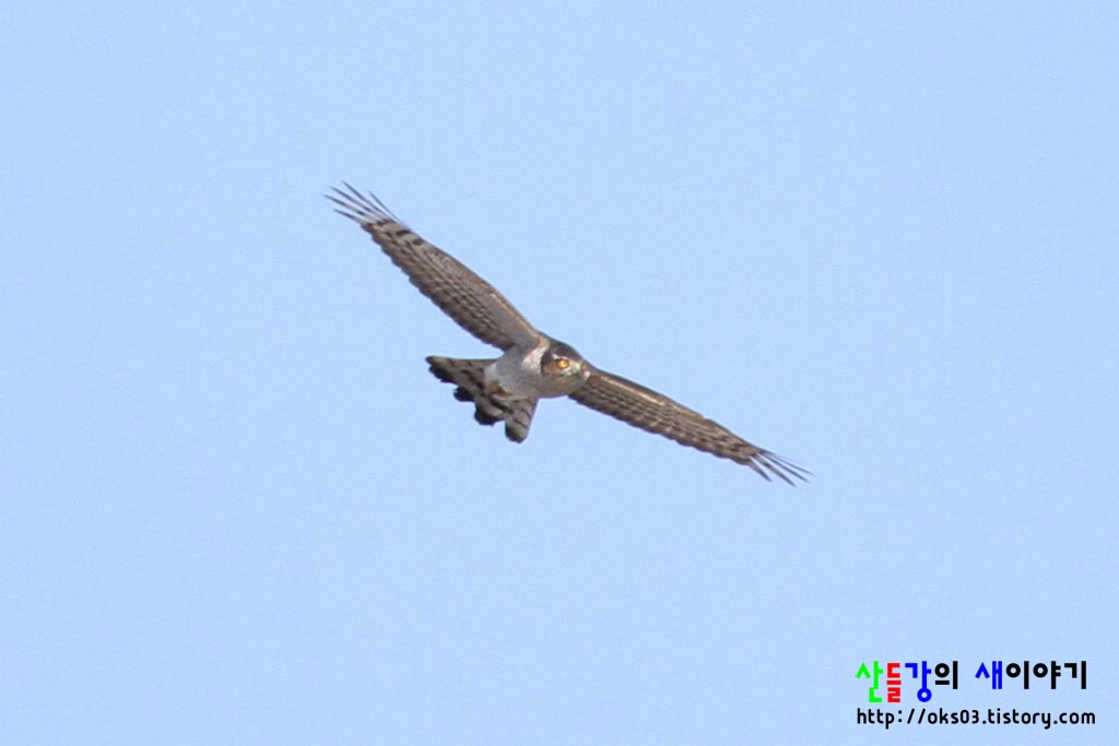날개 아랫면과 배의 굵은 가로줄 무늬로 볼 때 참매보다는 새매에 가깝지 않을까요?