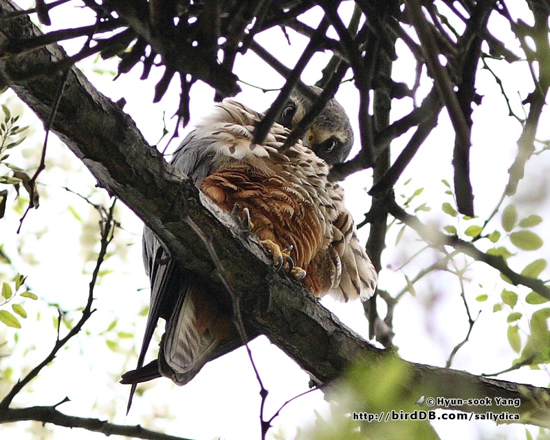 배가 붉으리한 덩치가 좀 있는 녀석이 나뭇가지 사이로 보입니다. 쌍안경으로 확인해보니.. 새홀리기..!! (공원첫관찰)