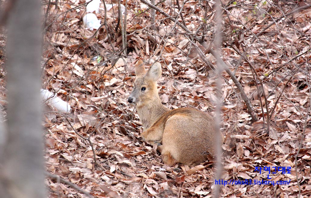 산에서 쉬고 있는 고라니