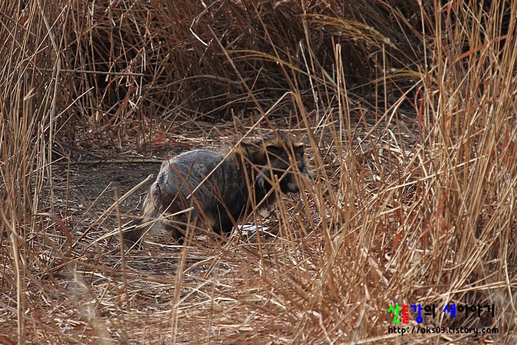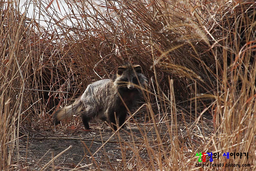 우포늪에서 만난 너구리... 털이 많이 빠지고 홀쭉해보여 마음이 아팠습니다.