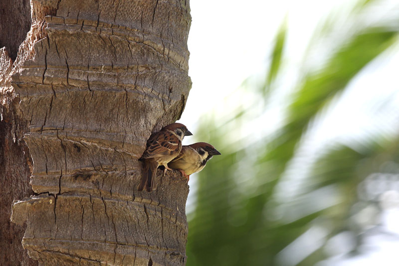 참새( 야자나무에 둥지가 있습니다.)