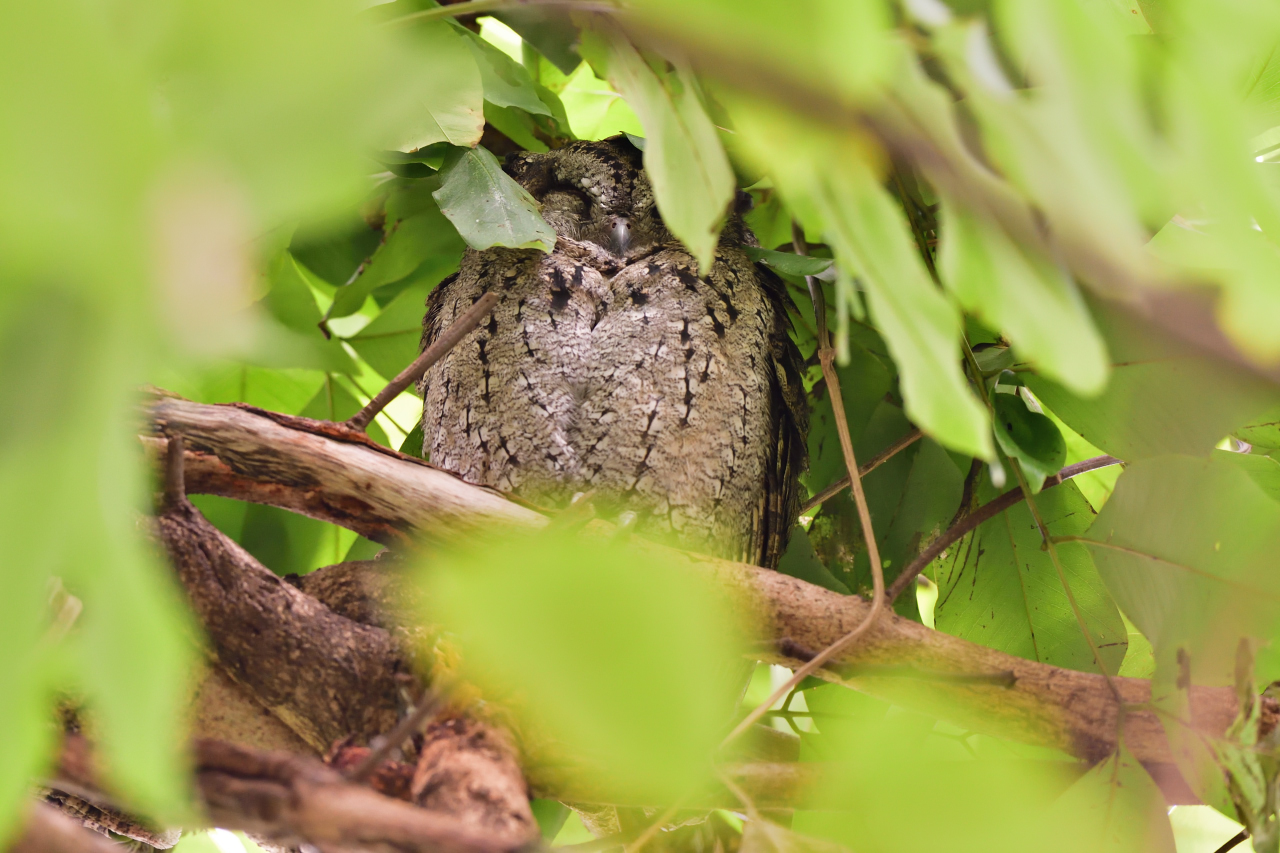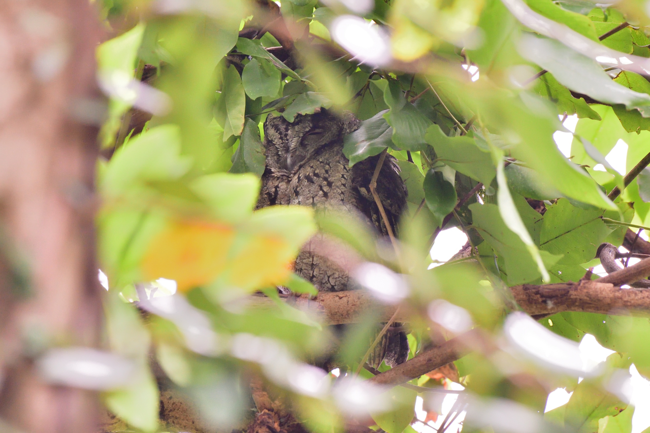 Taiwan의 식물원에 갔을 때 나무 위에서 잠을 자고 있는 Collared Scops Owl을 대학야조회 친구들의 도움으로 만날 수 있었다.