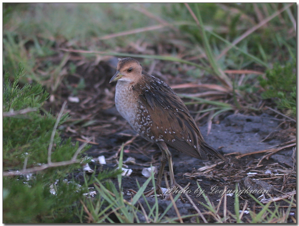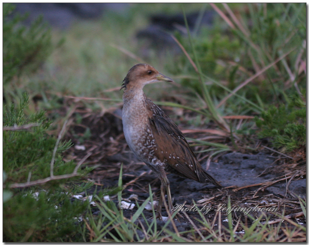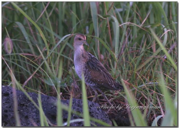 8월 초에 제주에 여행갔다가 바닷가 수풀에 숨어있다가 놀라서 나오는 녀석이 특이해서 찍어봤는데 알락뜸부기로 보이네요.