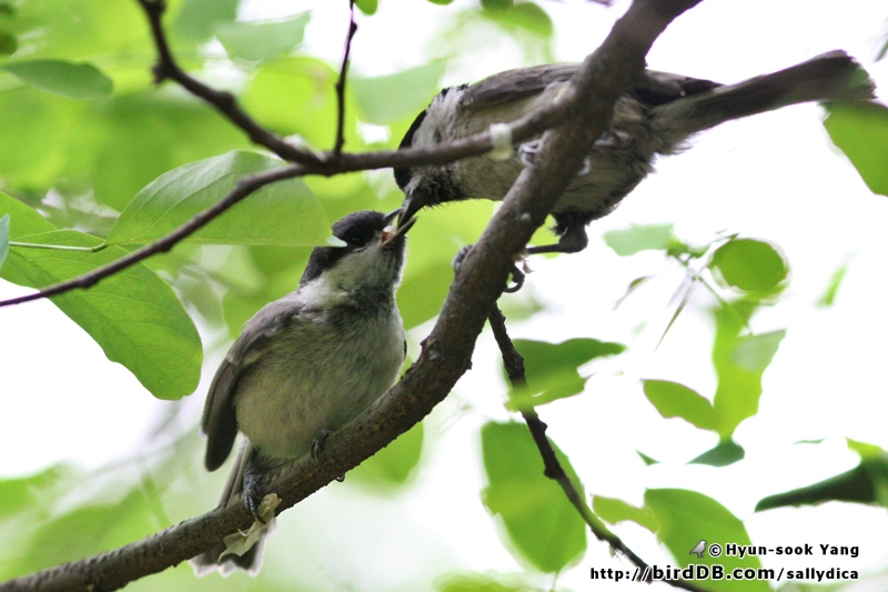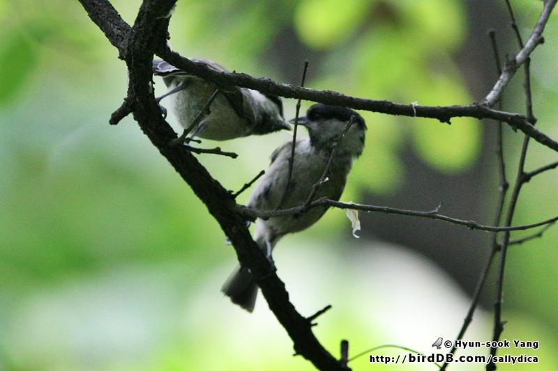 쇠박새들이 유조들을 하나,둘씩 데리고 다니며 맘마를 먹이고 있습니다. ^^