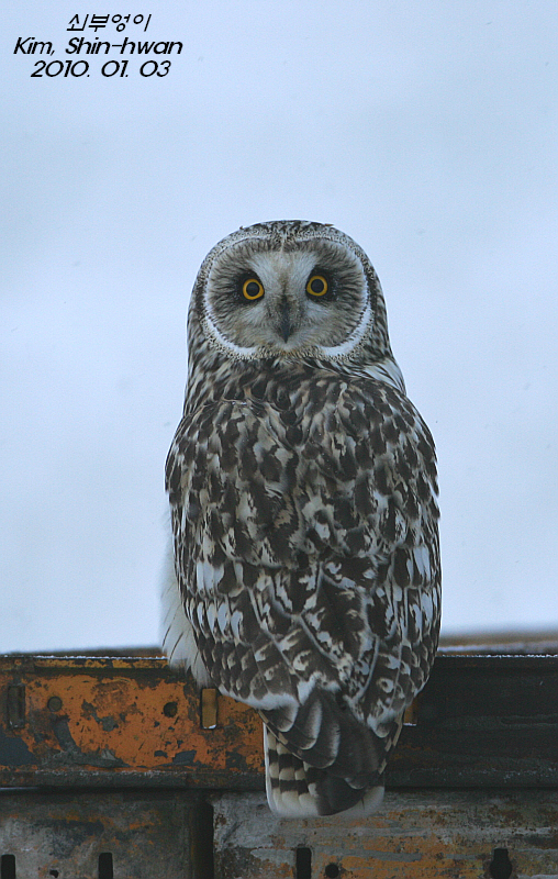 목이 180도 회전하는군요...눈매가 신기합니다. 천수만 쇠부엉이 멋짐니다.
