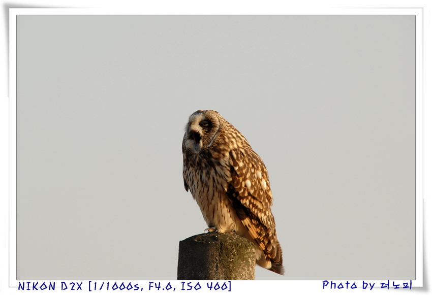 오늘은 하품하는 쇠부엉이를 만났습니다.