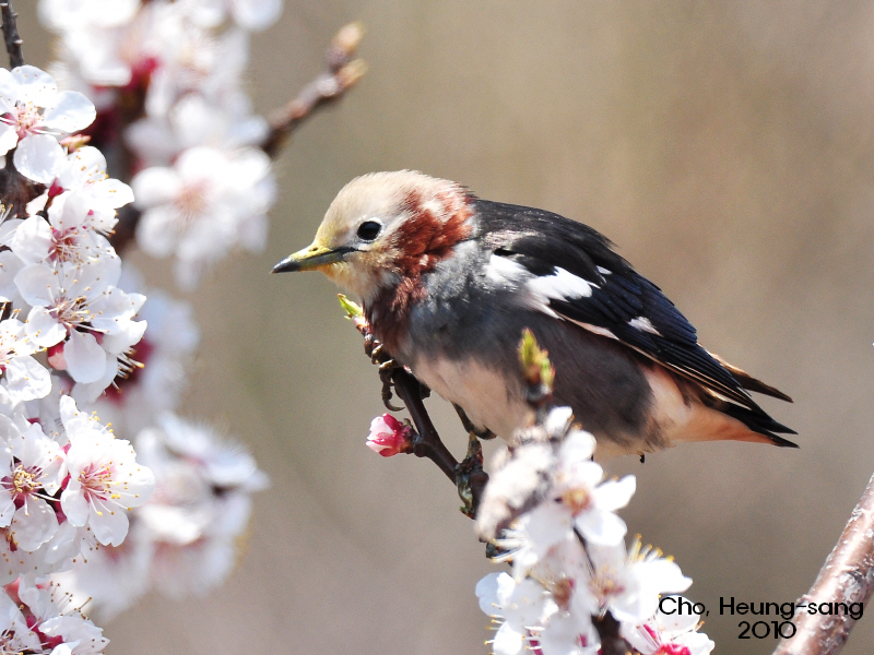 전깃줄에 앉아있을때는 깃이 지저분하다 생각했는데 이쁜 꽃과 함께 있으니 깃이 화려하다 생각되네요...^^