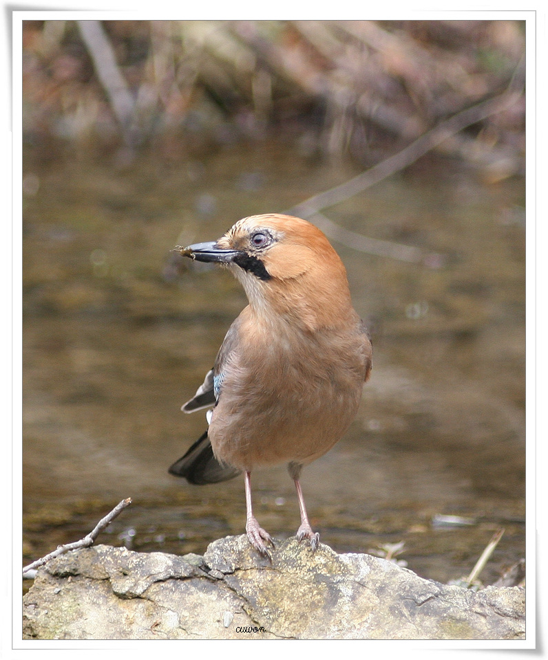 어치가 물가에서 민물게를 잡아먹고 있습니다....