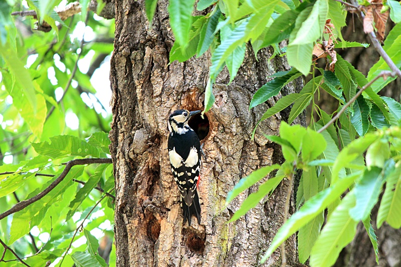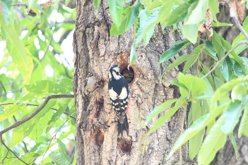 남이섬에서 가장 번잡한 광장 밤나무에 둥지를 틀고 열심히 육추중인 오딱이...