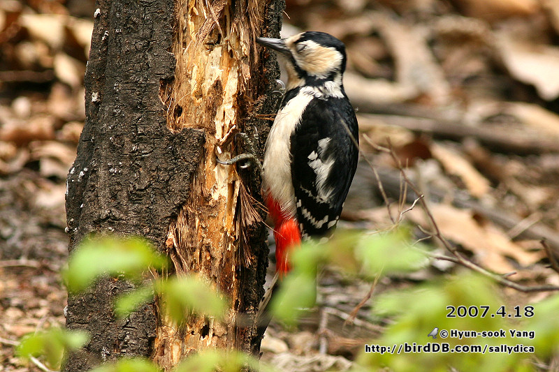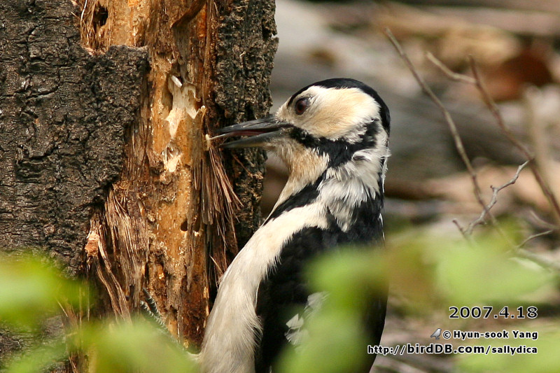 쪼아낸 나무속에서 벌레들을 찾아내서 맛있게 먹고있습니다..