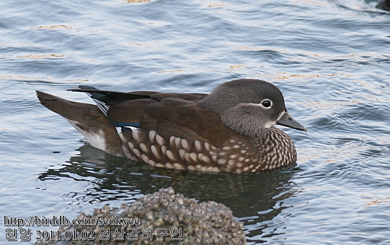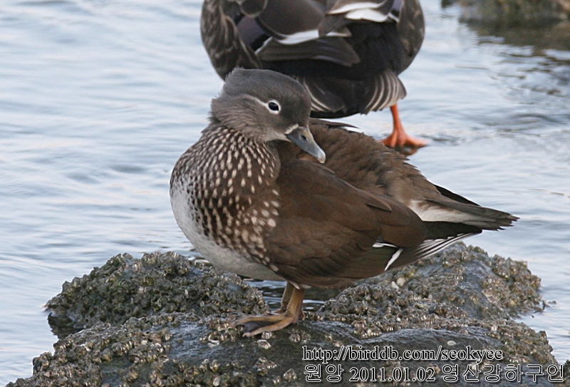 다른 오리들 사이에 암컷 1개체만 쓸쓸하게 있네요.
