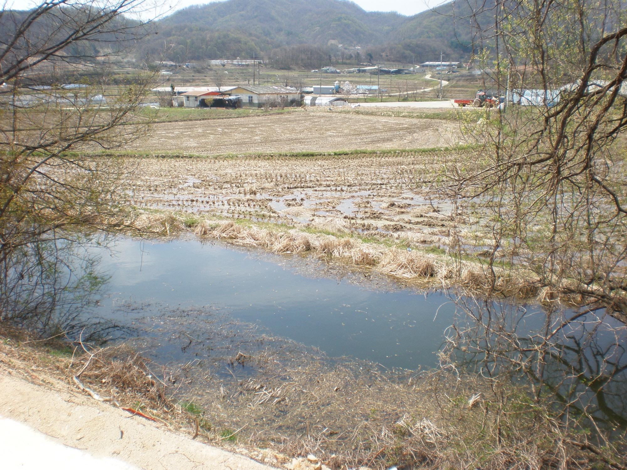 전에도 올렸다시피 논 옆에 있는 둠벙은 둠벙 옆 산길을 차가 다니도록 시멘트 포장을 했고,