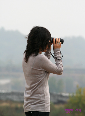 의외로 쌍안경(7*35)을 손에 놓지 않고 두루미를 신기하게 관찰하는 모습^^