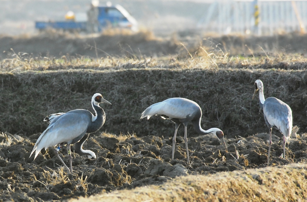 흑두루미도 2마리 보이네요.