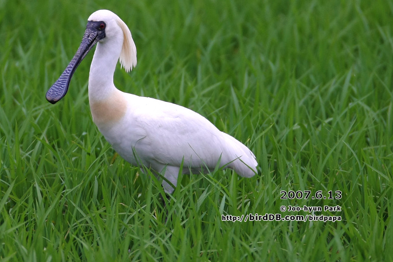 어느정도 자란 논을 배경으로 있는 저어새도 멋지군요...무척 가까이서 만나신것 같습니다.^^
