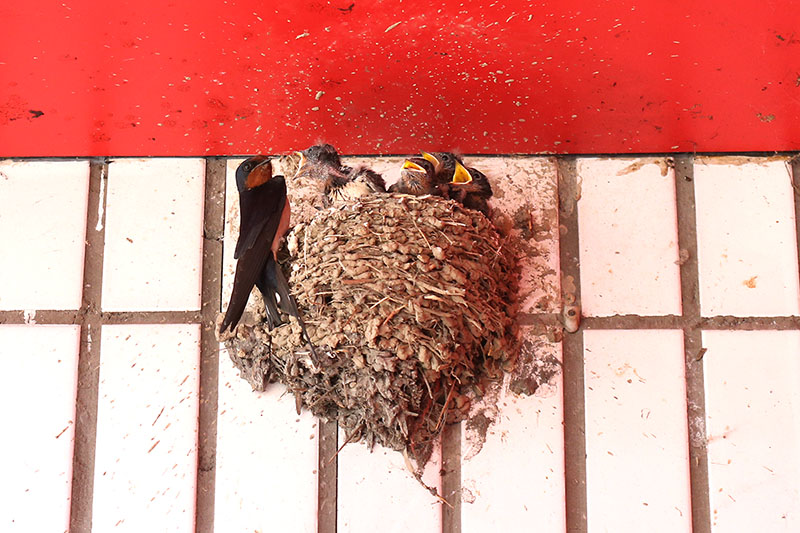 용정시장에 많은 제비들이 가게 처마에 둥지를 많이 틀었습니다.