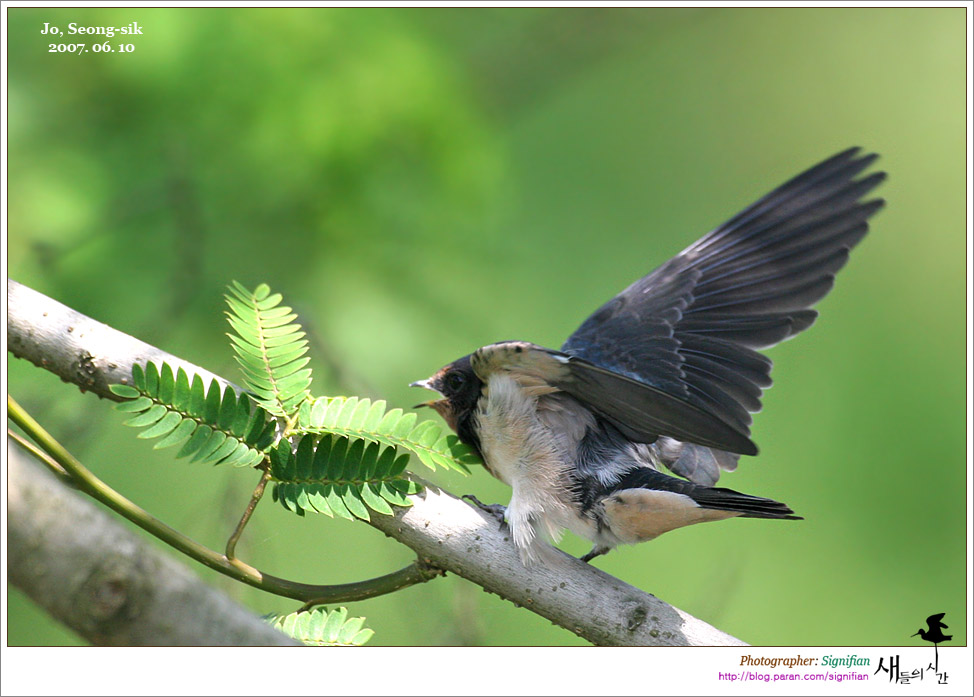 이소하여 야외활동을 시작한 제비를 만났습니다.