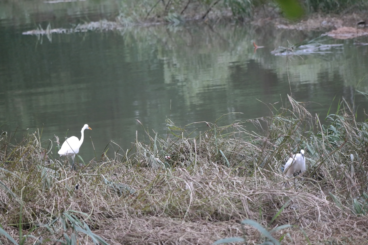 일단 부리 끝에 검은색이 없어서 중대백로로 판단을 했고요. 다리 색에 노란 기운이 없어서 대백로는