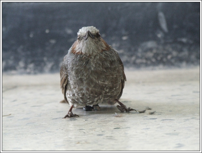 회사 현관문을 열자 직박구리가 날아 왔습니다. 몸 상태가 조금 부실하던데 이유를 모르겠습니다.