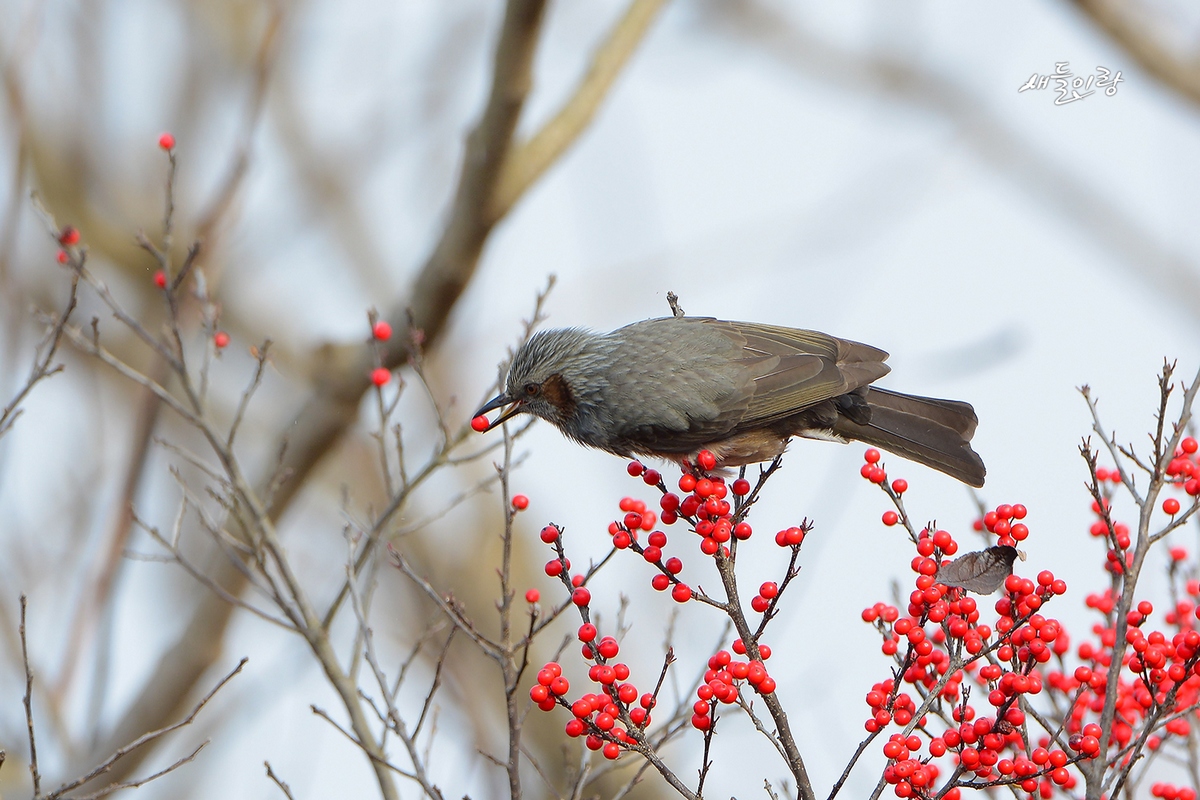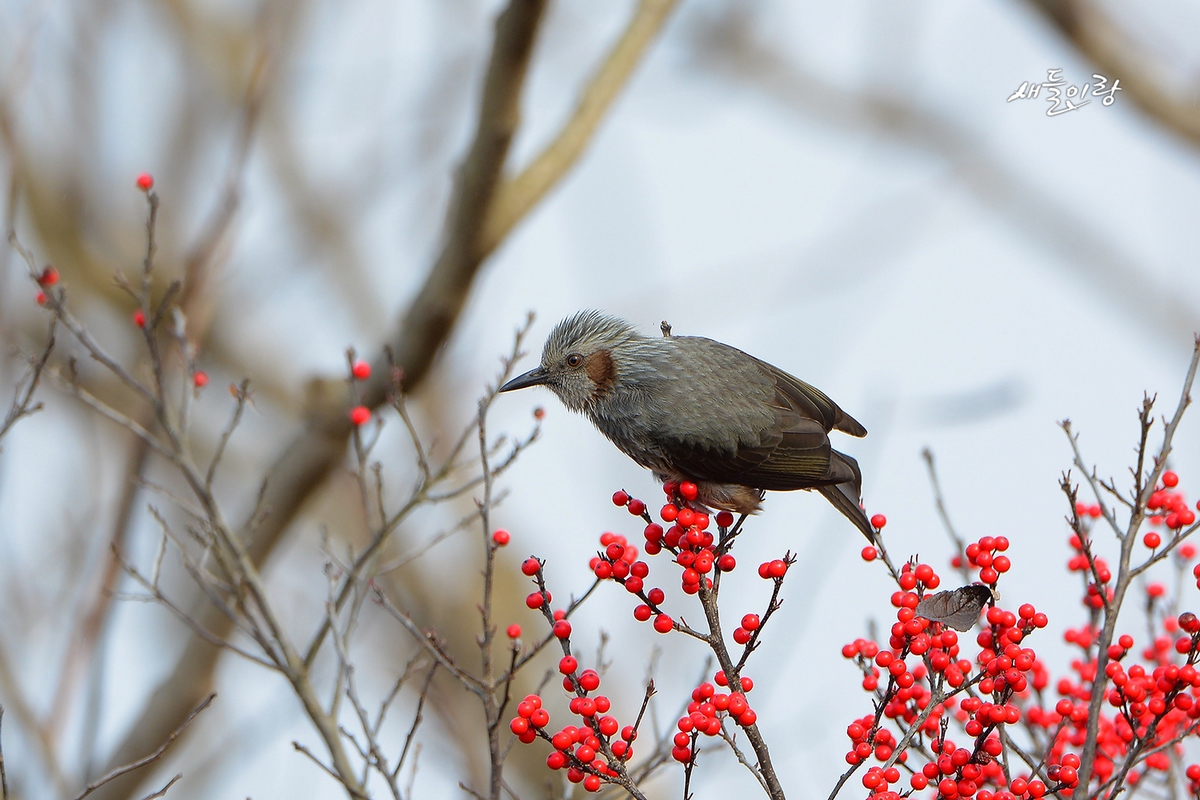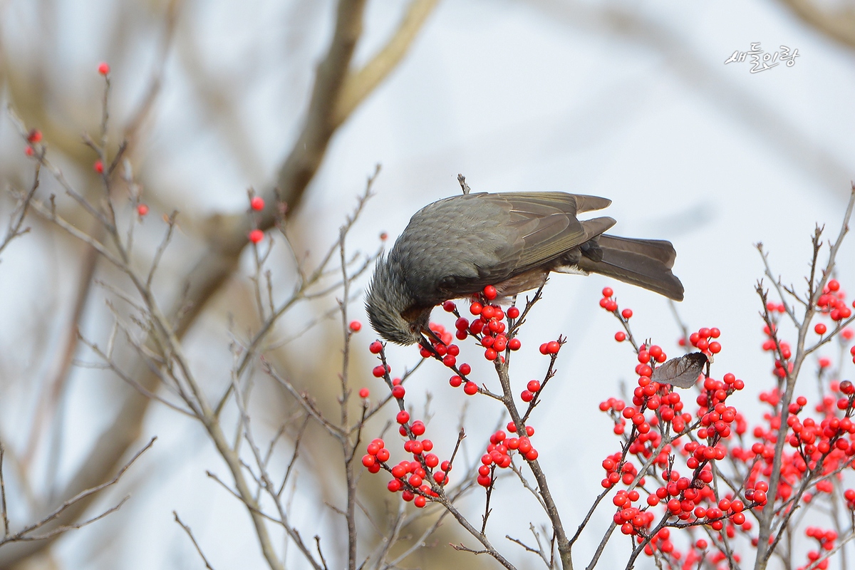 직박구리도 빨간 열매와 어울리니 아름답습니다