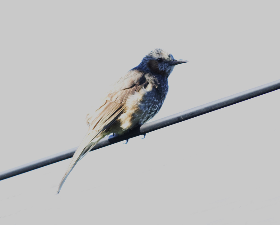 직박구리는 아주 흔하게 번식하는 텃새로 어디서나 관찰된다.몸색은 회색을 띠는 갈색이 보통이나 , 이번 촬영된 새는 머리 일부분, 뒷목과 앞목, 가슴과 배 , 발톱등이 푸른색이다. 바다직박구리와 교접후 낳은 직박구리가 아닌가 생각되나 고수님들의 고견을 부탁드립니다