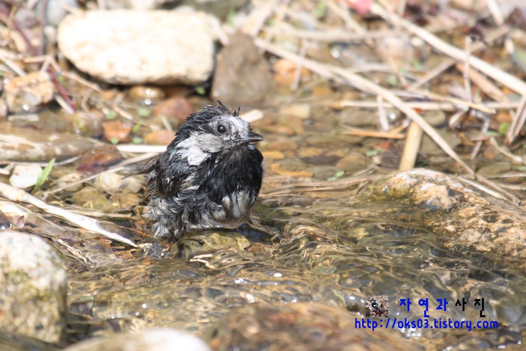 목욕하는 진박새를 촬영했더니 대머리더군요. ㅎㅎㅎ 많이 다툰 것 같아요.