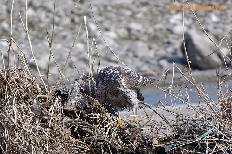 참매 미성조로 보이는 녀석의 사냥을 지켜보았습니다.