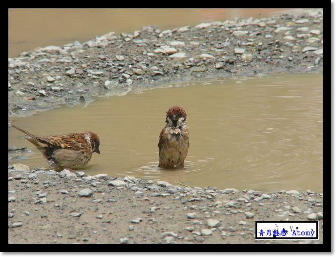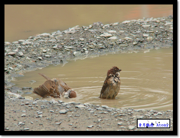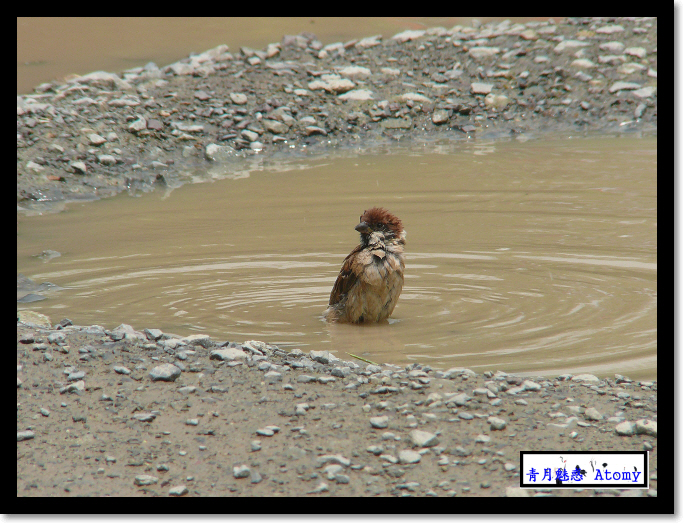 참새의 목욕장면입니다. 흙탕물이긴 하지만 엄청 시원해보이죠? ^^