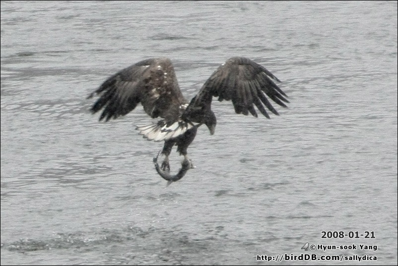 약 1분간격으로 참수리와 흰꼬리수리가 각각 물고기사냥에 성공합니다. ^^