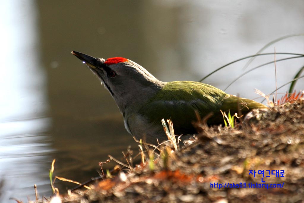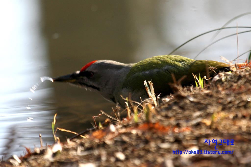 청딱다구리 물먹는 모습