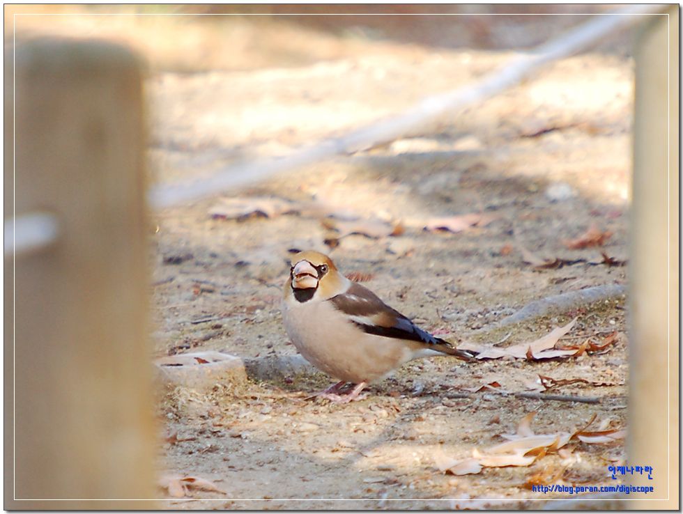 드디어 콩새가 왔군요. 아직도 부리의 흑색이 조금 남아 있군요.