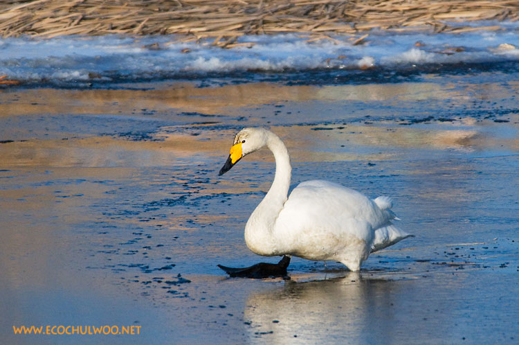 살얼음 살짝 얼은 곳을 조심스레 걸어가는 모습이 신중해 보입니다.