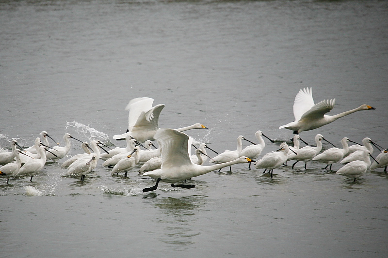 큰고니와 노랑부리저어새들의 오묘한 조화... 넘 보기 좋네요. 낙동강하구에서도 수천마리의 큰고니들과 매일같이 함께 하고 있답니다.^^*