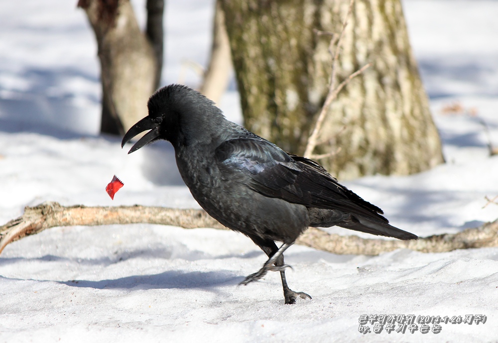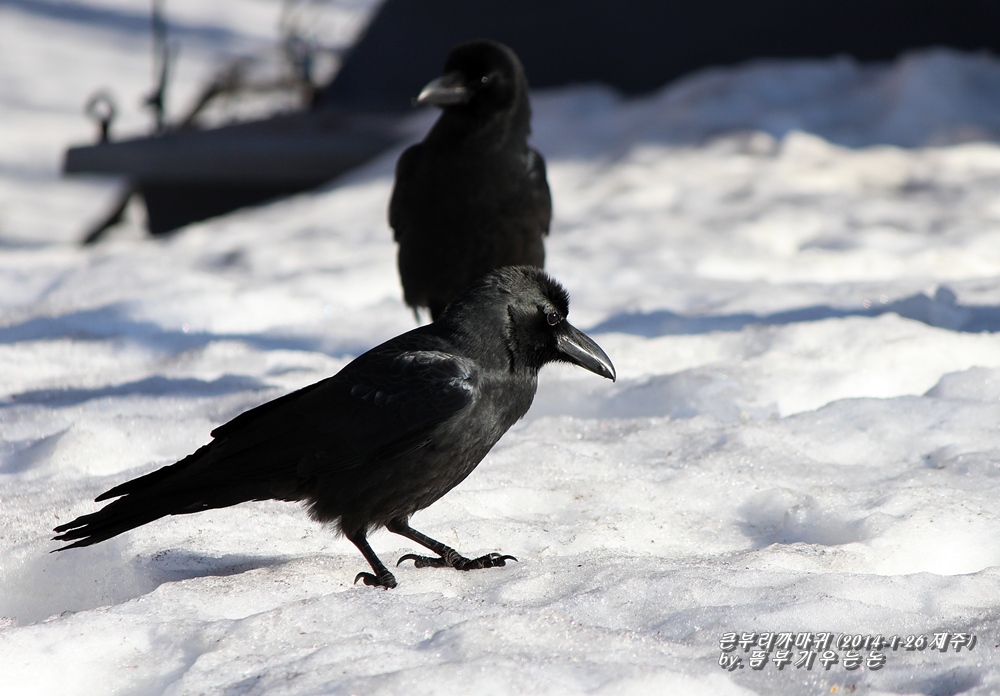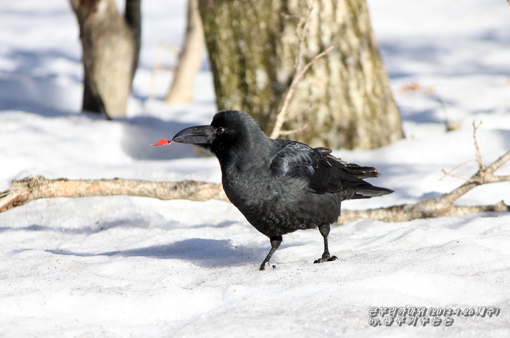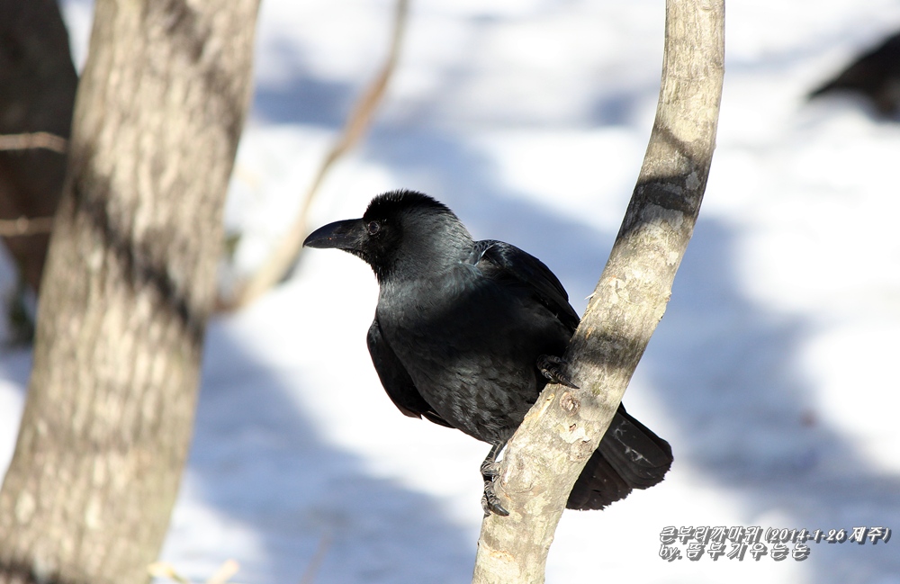 한라산 등반길에 곳곳에서 만나는 길동무 큰부리까마귀...