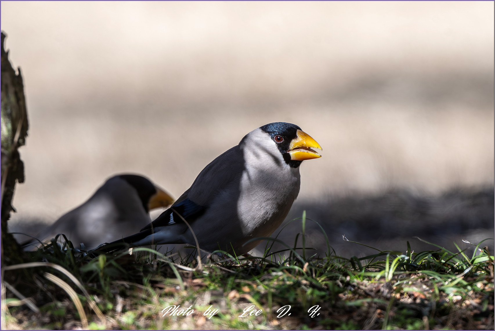 큰부리밀화부리*Eophona*personata*Japanese*Grosbeak