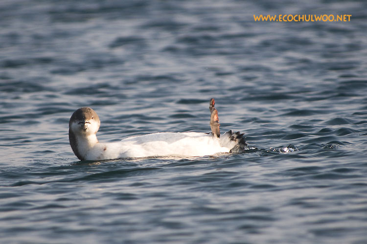 기름에 많이 오염되어 있는 개체입니다. 이 녀석은 겨울깃이네요.