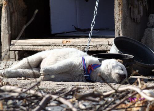 콩숙이는 지금 시체놀이중...배때기가 빵빵하면 곧잘 시체가 된다. 아차..콩숙이는 차에 치여 죽은