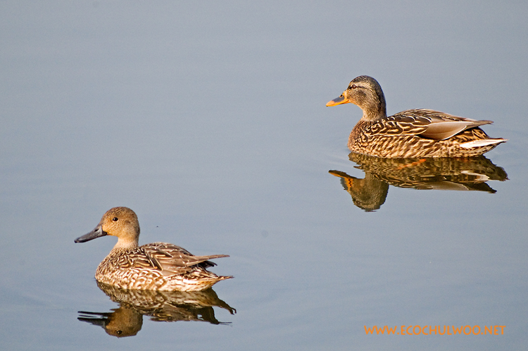 청둥오리 암컷과 고방오리 암컷이 함께 있어 올려봅니다.