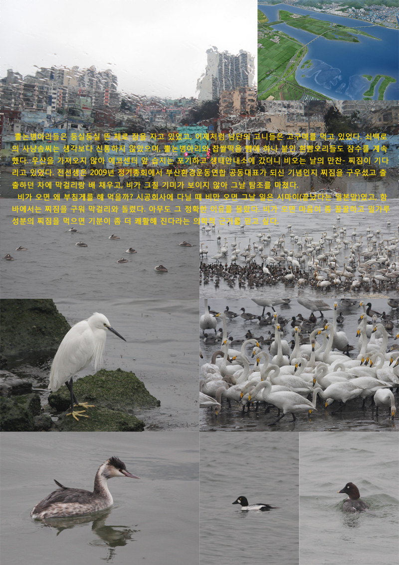 매번 이렇게 정성스런 후기를 대하자니 재미있기도 하고(말씀이...) 부럽기도 하고(아직 많이 보이는 새들이...) 안타깝기도 하고(망가지는 모습이...) 배가 고파지기도 하고(항상 무언가를 드셔서....) 그러네요. 꾸준히 올려주셔서 너무나 감사드립니다. 언젠간 낙동강에서 함 뵙겠지요.