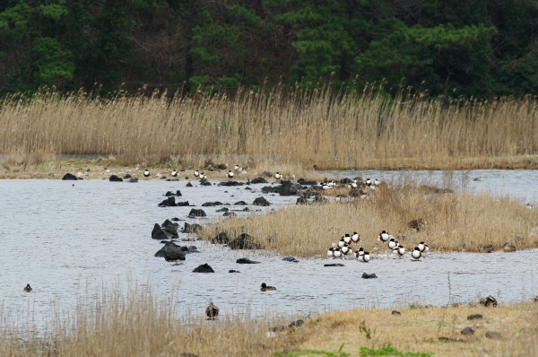 월동하는 저어새를 볼까 했는데 보시다시피 갈대밭 뒤에 삐죽 하얀 색이 조금 보입니다.