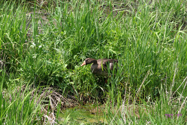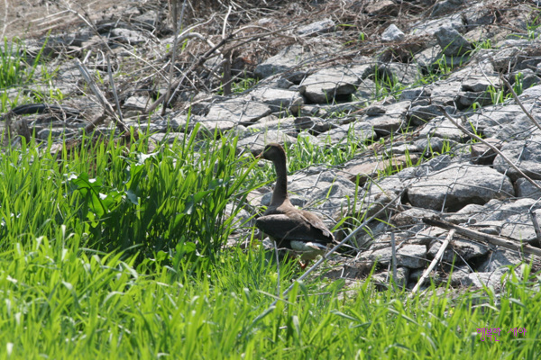 풀숲에 바짝 엎드려 있습니다. 아니 쇠기러기가 북상을 못하고 홀로 낙오 되어 있지 뭡니까. 30분동안 지켜볼때,