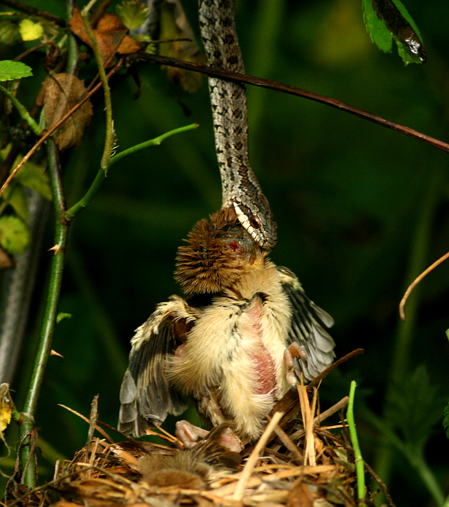 어제도 붉은머리오목눈이를 관찰을 하다가 둥지를 기어 올러오는 누룩뱀을 만났습니다.