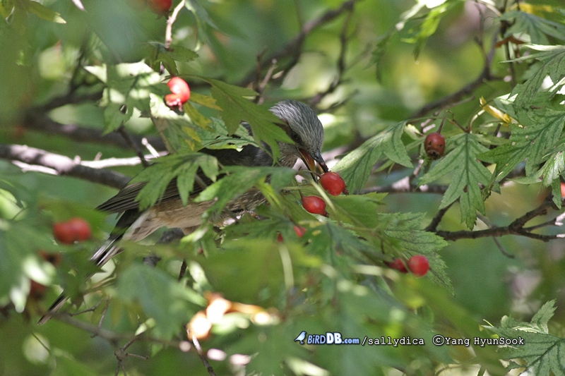 직박구리들이 팥배나무와 산수유,산사나무(?) 열매들을 먹고 있습니다.