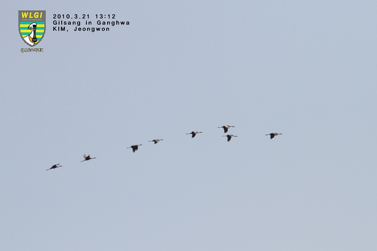 강화도를 통과하는 흑두루미들이 2009년 가을 1250여마리가 넘게 남하하여 이즈미 또는 순천만에서 겨울을 나고