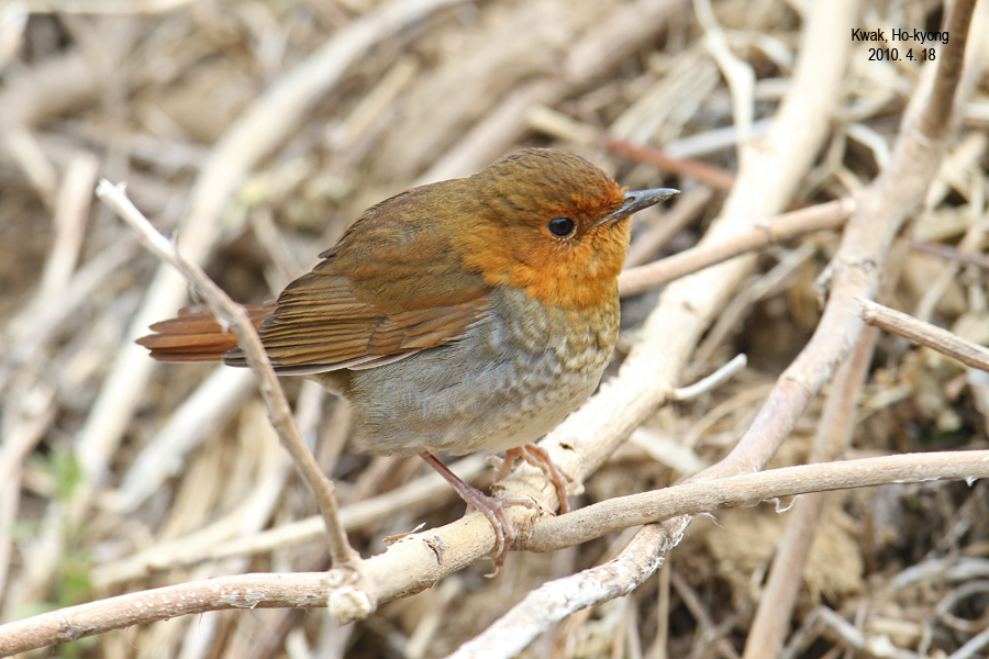 붉은가슴울새 암컷입니다.