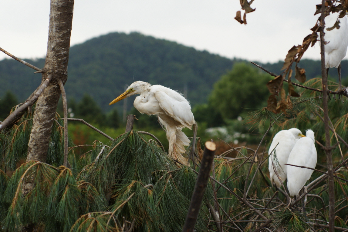 오늘 점심부터 내린 비로 주로 쇠댁로와 중대백로 새끼 수백마리가 폐사 위기에 놓여 있다가,