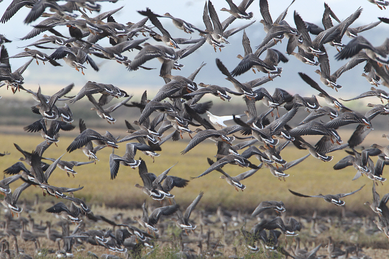천수만의 10만 마리의 기러기 속에...